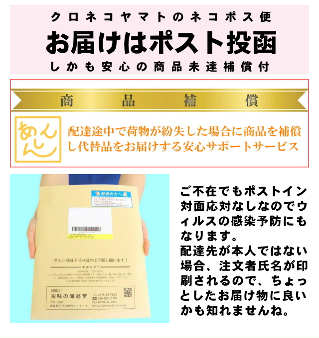 ポスト投函となりますので配達の日時指定と代金引換のお支払いはできません。