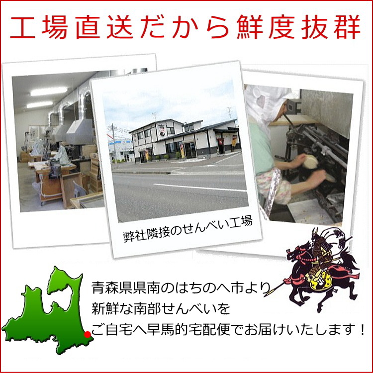 - セールスポイント : 和歌山県産の食用竹炭の為に黒いせんべいですが、味は普通の白せんべいと同じでピュアな小麦本来の塩味です。竹炭は体の健康に良い様々な効用がありますが、皆様も既にご存知かと思いますのであえて表記致しません。南部せんべいと言えば白いと言う概念を打ち破り、竹炭とヘルシーな南部せんべいを融合して健康をサポートしてくれる黒い南部せんべいを作りました。健康志向の方にぜひご賞味頂きたいヘルシーなお菓子です。こちらは単品個装品となります。