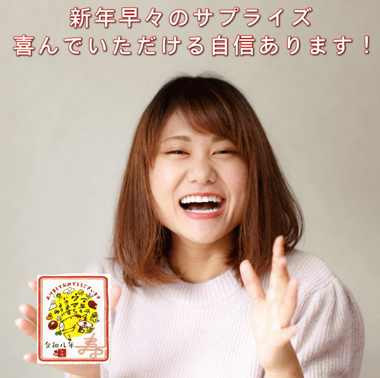 - セールスポイント : 一般封筒料金の切手を貼って年賀郵便として郵送できる食べられる年賀状です。素材はチーズタラや駄菓子屋さんで売られている鱈のすり身をのした魚肉シートです。食べる事の出来る可食インクを使い専用のフードプリンターで年賀の干支をフルカラープリントしました。ご希望の方には宛名ラベルをサービスしておりますので、購入ボタン付近の項目選択肢よりお選び下さい。