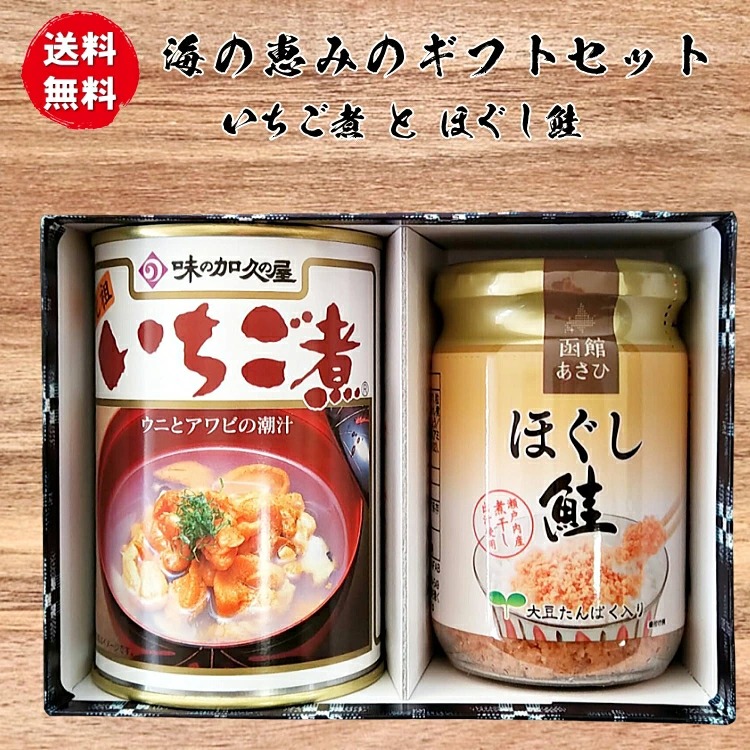 【送料無料】シーフードギフトPセット【いちご煮缶詰1個とほぐし鮭フレーク1個 】贈答 お吸い物 汁物 スープ 生 ふりかけ 安心 安全 国内産 土産 お歳暮 お中元 ギフト お年賀 おせち 母の日 父の日 敬老の日 お中元