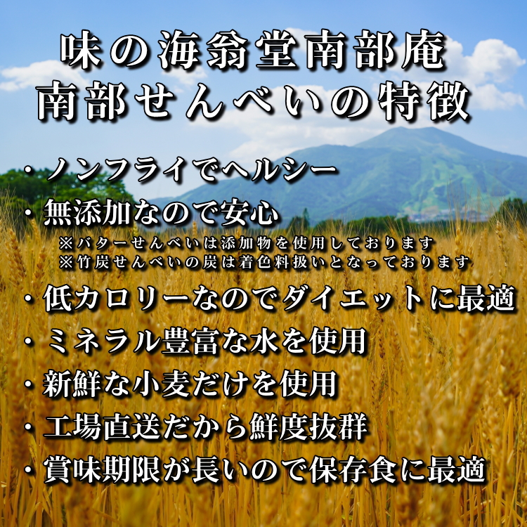 南部せんべい竹炭10枚の15個セット【青森 八戸 味の海翁堂 南部庵 国産 無添加 無着色 ノンフライ 小麦 手焼き 産直 産地直送 工場直送 賞味期限が長い 長期保存 非常食 備蓄 食品 災害 震災】