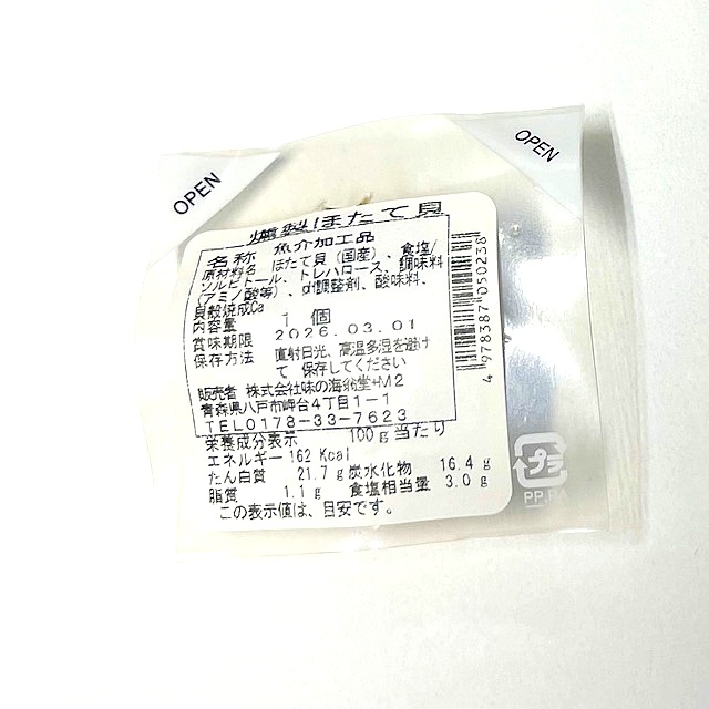 この数値は目安です。 - セールスポイント : 国内産の帆立貝をまるごと燻製にした高級おつまみです。